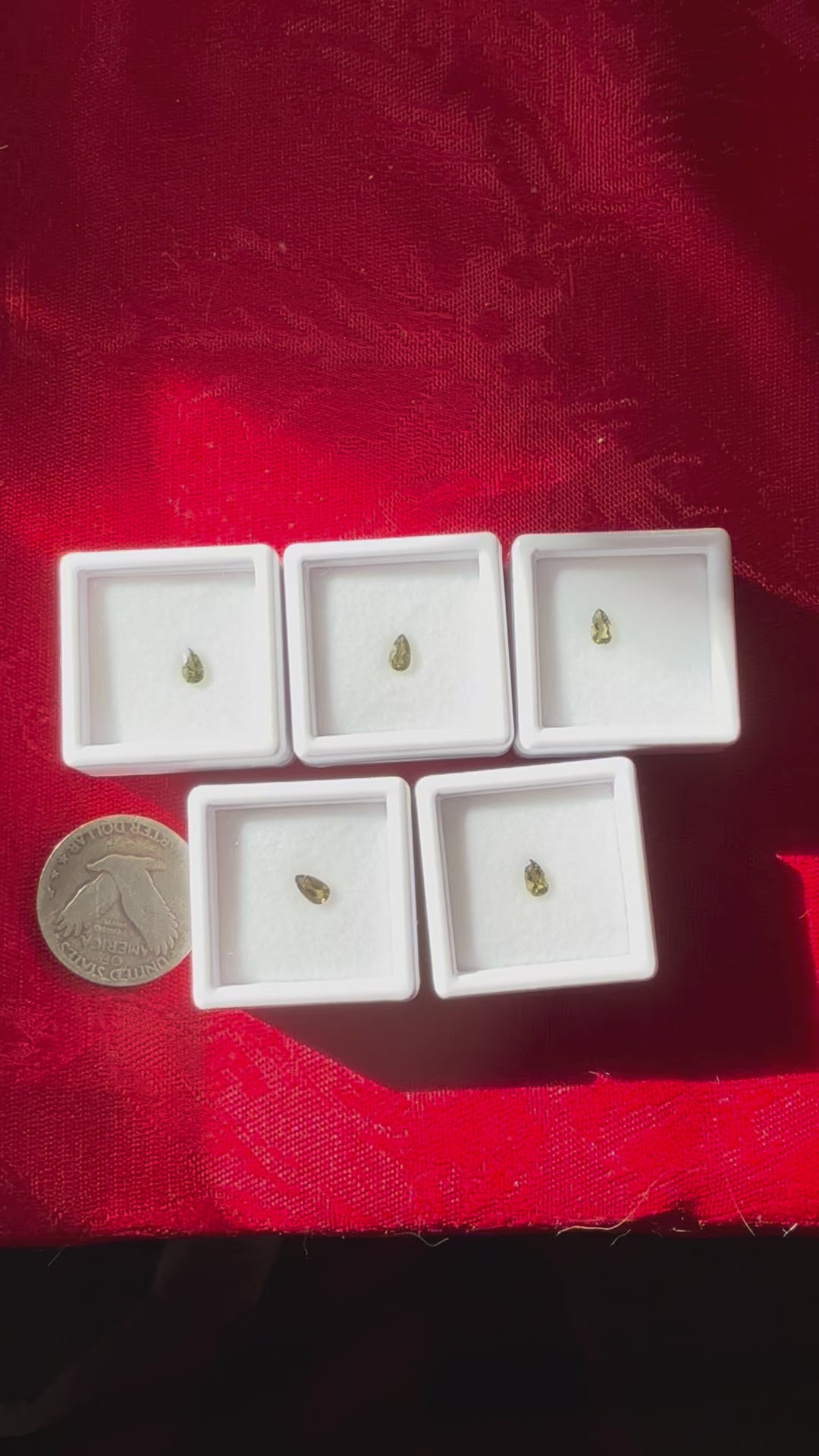 5mm Moldavite Tear Drop Facet in Acrylic Case, 10.00 each!